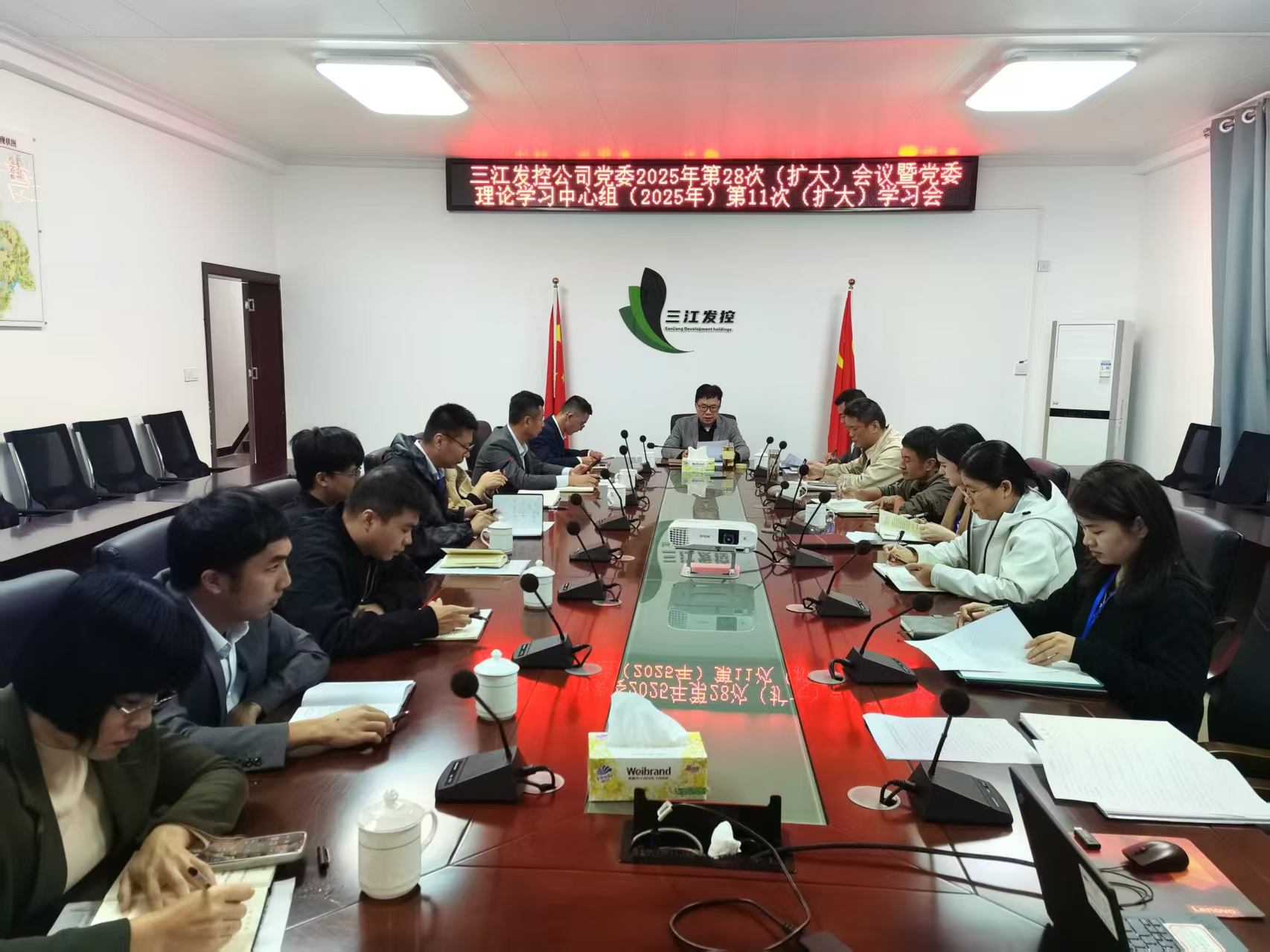 11月20日上午,市三江发控公司在第二会议室召开党委2025年第28次(扩大)会议暨党委理论学习中心组(2025年)第11次(扩大)学习会深入学习领会习近平总书记关于海南工作的系列重要讲话和指示批示精